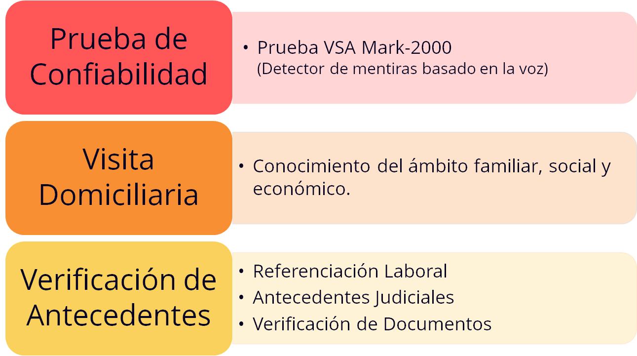 - Detector de mentiras VSA: Implementamos pruebas para evaluar la honestidad y confiabilidad de los postulantes; equipo que detecta la mentira por medio de la voz.