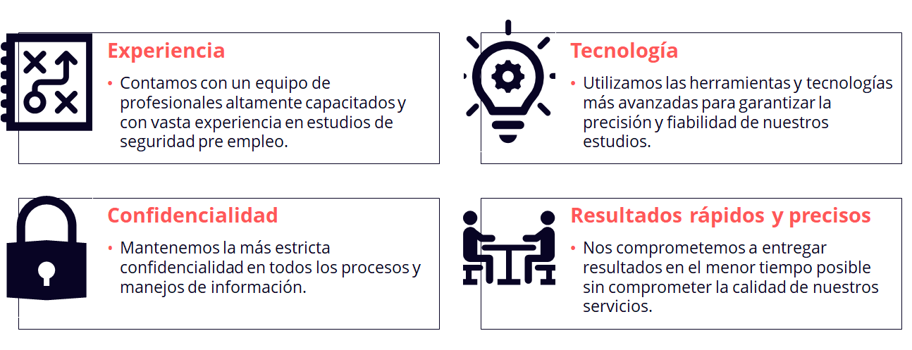 Ofrecemos una amplia gama de servicios diseñados para garantizar la seguridad y confiabilidad de tus futuros empleados: